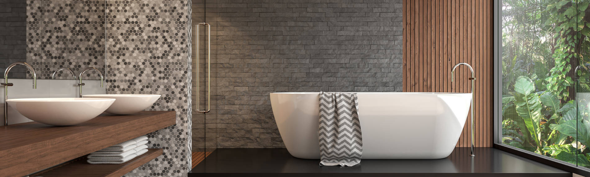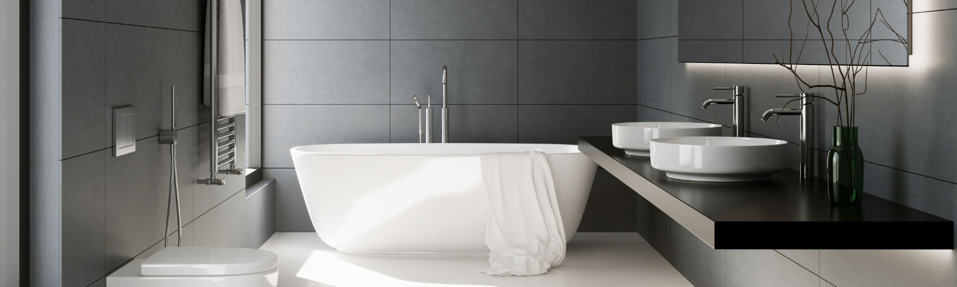 Dunkle Farben wie Schwarz und Anthrazit lassen ein Bad ausgesprochen nobel, geradezu majestätisch erscheinen. Insbesondere in einem matten Ton wirkt der Look deutlich weniger brachial, als es die Vorstellung vermuten lässt. In Verbindung mit hellen Nuancen wie einem warmen Sandton oder warmen, metallic-farbigen Armaturen in Gold oder Messing wird der dunkle Ton definitiv sanft eingebettet und wirkt angenehm gemütlich.